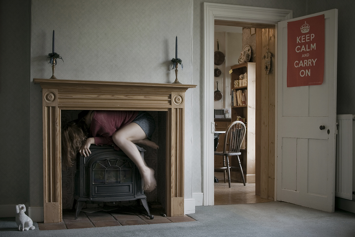 Inspired by her childhood games of hide and seek with her brother, Alma gives herself 10 seconds to try and hide or make herself as small as she possibly can before her camera goes off on self-timer. The photographs show Alma in a variety of domestic locations, with her adult body squeezed into confined spaces, never completely concealed, but also never revealing her true identity.