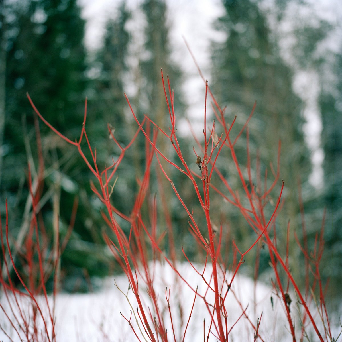 The collection of images that Kristina made of this time inevitably contains a quiet sadness. The photographs vary from the vast, overwhelming Swedish landscapes to snippets of the everyday: a plant, a small knotted ribbon, a stairwell. We see a glimpse of a room though the doorway, empty but for a few balloons.