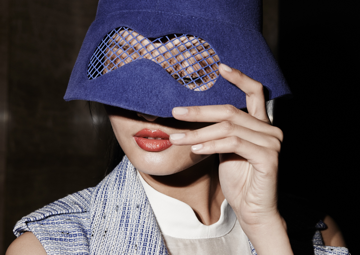 The first thing I notice about these images is that all the faces are hidden. Hats, hoods and hair hide the faces of the people who are being preened into pieces of art. It’s this act of concealment that portrays the theatre of hide and seek the fashion industry puts on for us: the wrapping of each model in clothes and make up to present the most beautiful of gifts.