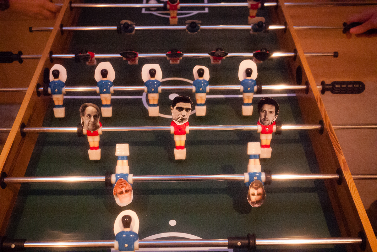 In addition to the work on the walls, the Colour Photographers vs Black and White Photographers table football was a hit. A great rivalry already emerging between black and white centre forward Robert Capa and colour ‘keeper Paul Reas…