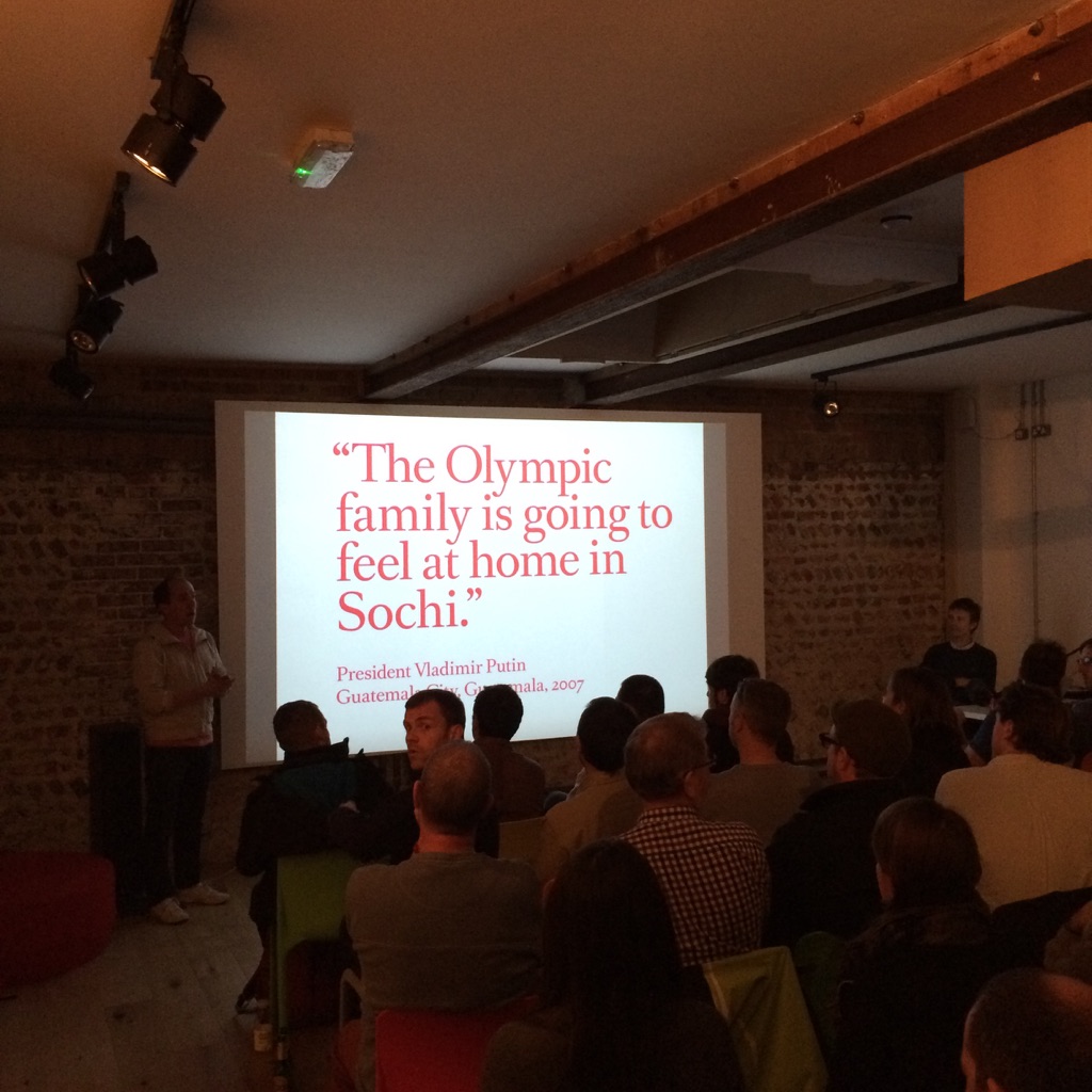 The Sochi Project, which Rob worked on for four years with journalist Arnold van Bruggen (pictured above making an appearance at the workshop via satellite linkup), is a body of work we’d been following since it’s inception and so we were delighted we could work with Rob. Over the course of his time with us the scope of the project became even more impressive, both in the sheer scale of it and in the clarity of the storytelling, with Rob and Arnold focusing on a series of stories from the Sochi region and releasing a range of publications during the four years. Needless to say, everyone came away with a more informed insight into what was (and is) going on in that part of Russia, and an appreciation of the dedication a project like that takes. Plus a pretty hefty dose of inspiration too!