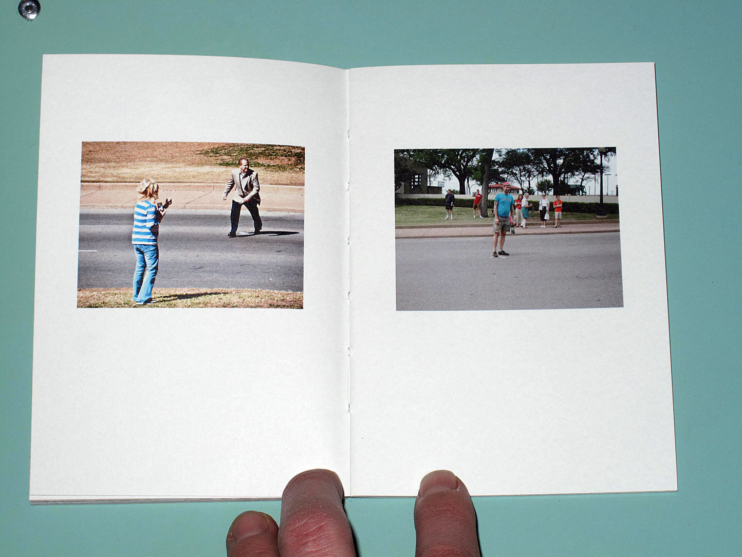 White Xes now mark the spot on the freeway on-ramp that JFK was shot, and tourists await breaks in the traffic to run out and get their photograph taken one the spot. The book mixes images taken from the webcam, trained on the Xes, with images from street level taken by the tourists in a macabre but very funny series. There is a serious message there, deliberate or not, but the ridiculousness of it all overpowers that, for me at least. This is by far one of my favourite books I’ve picked up this year (although it was published in 2013).