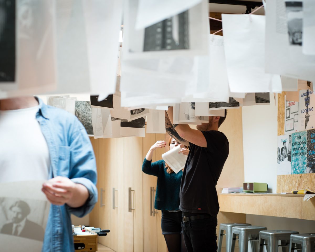 THE WALL exhibition will feature all the submissions, and visitors will be invited connect images and text with lines of red string, which will then become part of the work. Over the course of the festival, more and more lines will be added, slowly obscuring the printouts underneath.