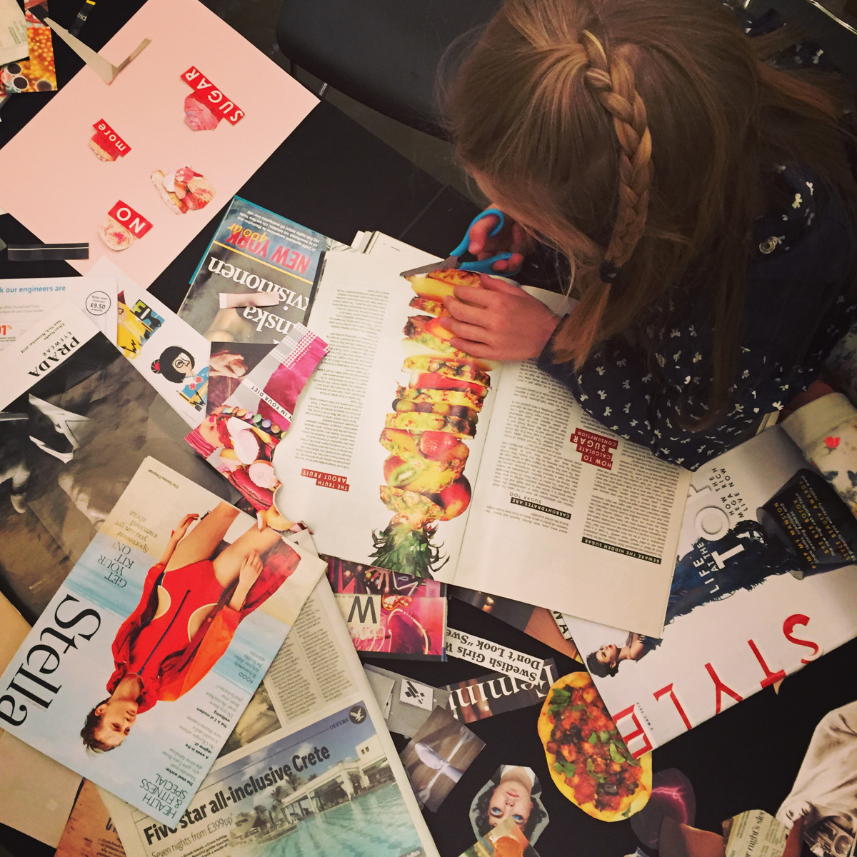 Located in the gallery, amongst Kepes’ work, and opening on Friday 15th May 2015, we proceeded to make a beautifully chaotic mess as almost 400 visitors in one evening (and a further couple of hundred the next day), cut and spliced, stuck and pasted images from a range of sources to create their own one-off works of photomontage art.