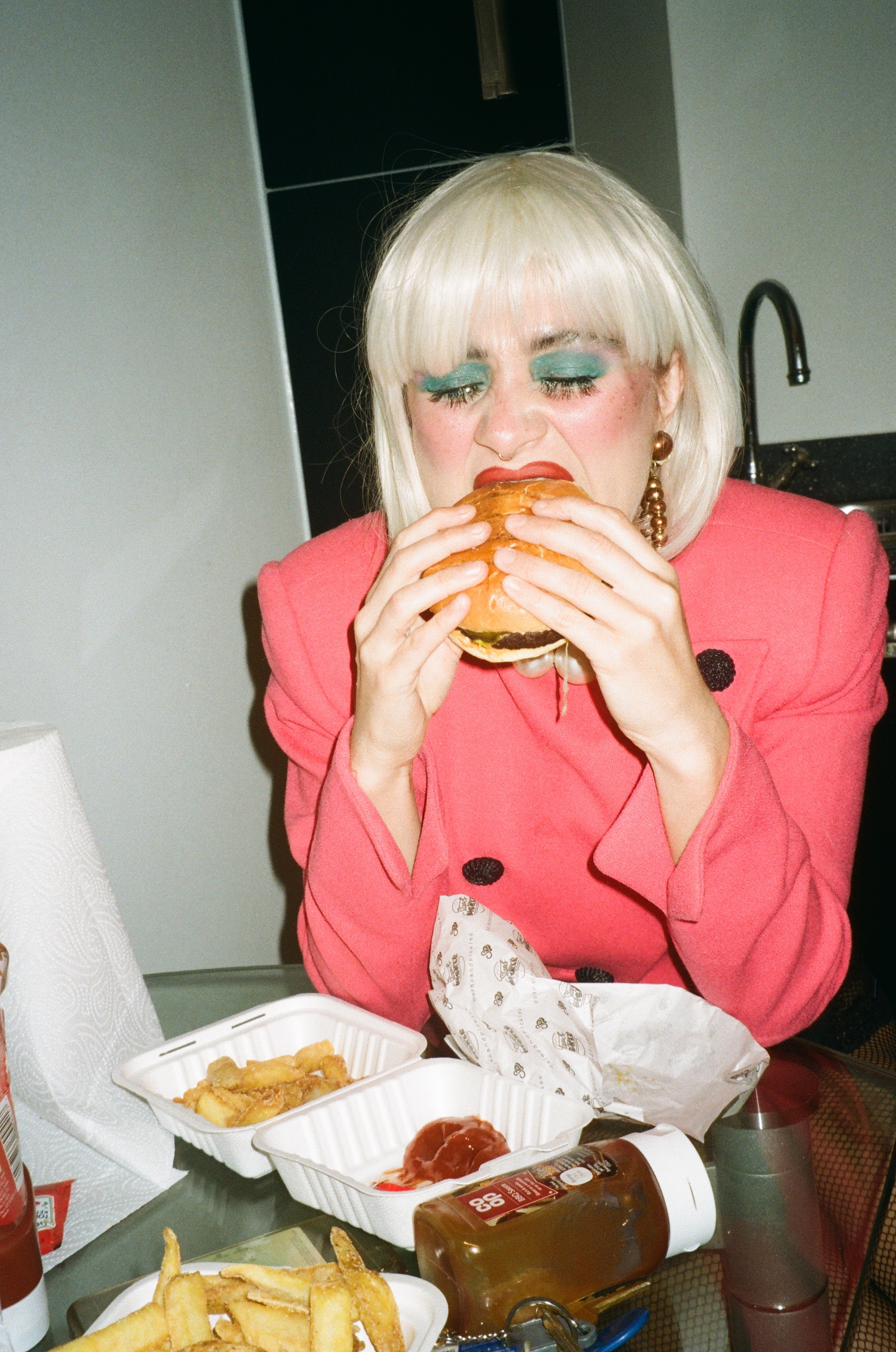 Emma Bentley Fox, she/her, is an artist & producer based in Leeds. Interested in image making as community making, she has a deep commitment to creating caring & accessible spaces, informed by her own experiences of exclusion. A Party Mom with, and co-founder of, Party Mom Society, she has been creating and documenting alternative queer party spaces in Leeds since 2018. Her photography is soft, personal and intimate, though not sometimes without edge or silliness. She uses photography as a way to explore gender expression & identity, Disability and her relationship to those around her, using joy, care & radical togetherness as acts of resistance. Shooting on 35mm film, she also has an interest in personal and historic photographic archives, and analogue film techniques. She has recently released a new zine, ‘To _______, Thanks for Everything! Emma’.